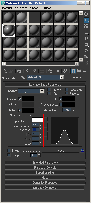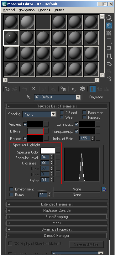 4) Click on your first material and select Standard again and make this a Raytrace material this time. Apply the following to the material:
